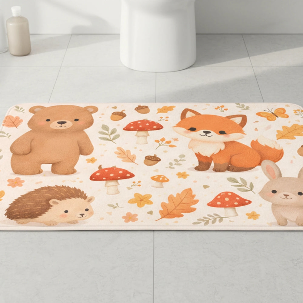 Bu sevimli banyo paspası, eğlenceli ve sonbahar esintili bir estetik sunar. Yumuşak yüzeyine bastığınızda, kendinizi orman canlılarının neşeli dünyasında ve sonbaharın canlı renkleri arasında hissedersiniz. Kaymaz tabanı güvenlik sağlarken banyonuza dekoratif bir dokunuş katar.