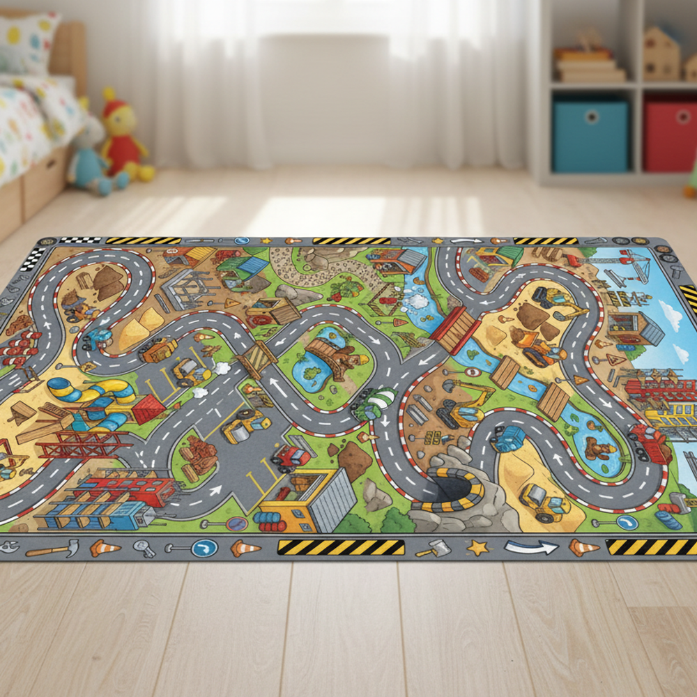Küçüğünüz için eğlenceli bir alan mı hayal ediyorsunuz? Bu Eğlenceli Şehir Çevre Dostu Halı, canlı bir inşaat alanını doğrudan odalarına getiriyor! Yolları, binaları ve iş makinelerini bu yumuşak, çevre dostu halının üzerinde keşfederken atılan kahkahaları hayal edin. Bebek odaları, oyun odaları veya benzersiz bir bebek partisi hediyesi için mükemmeldir; her mekâna eğlence ve hayal gücü katar.