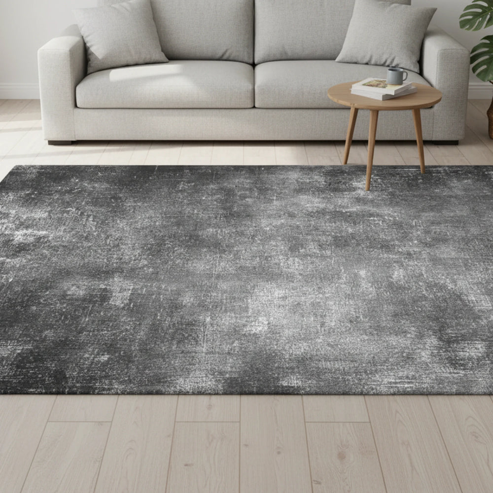 Bu çevre dostu halı, koyu, orta ve açık gri tonlarından oluşan bir renk paleti sunarak grunge ve dokulu havasını vurgular. Eskitilmiş yüzeyi karakter katar ve minimalist ya da endüstriyel dekor stilleriyle kusursuz bir uyum sağlar. Bu sadece bir zemin kaplaması değil; evinizin görsel derinliğini artıran bir ifade parçasıdır.