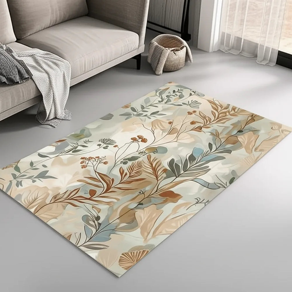 Bu halı, yumuşak ve nötr bir renk paletinde güzel bir botanik desene sahiptir. Suluboya tarzı, halıya hayalimsi ve eterik bir görünüm kazandırır. Bej, açık kahverengi ve mavi-yeşil tonları, her odada sakin ve davetkâr bir atmosfer yaratır.